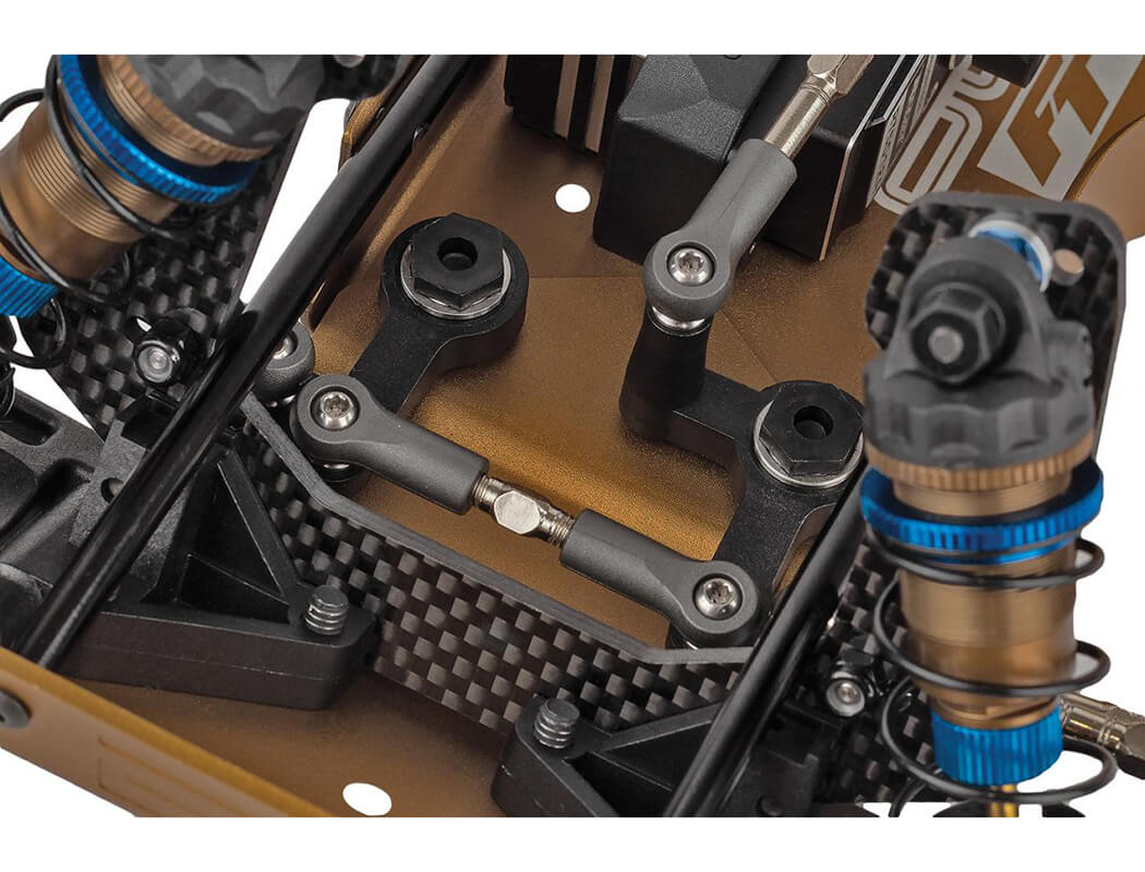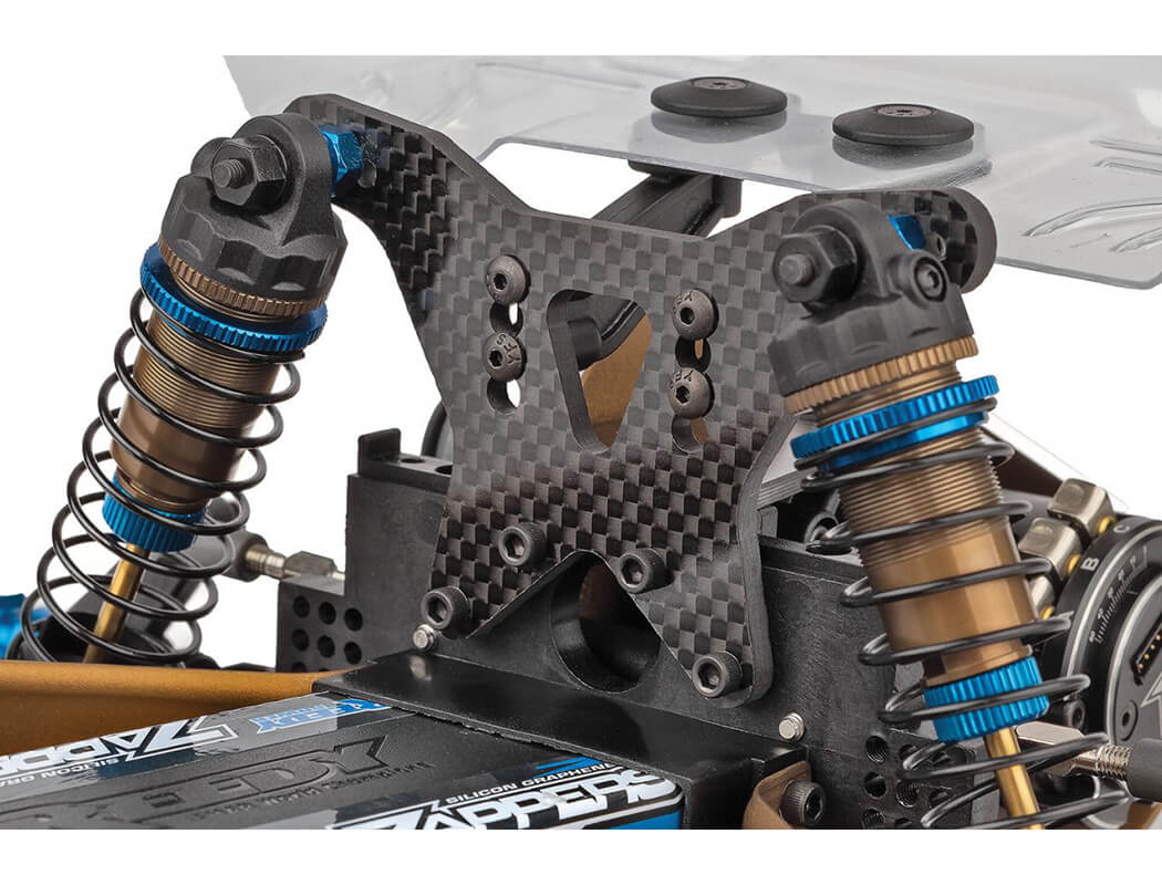 • New Factory Team front and rear carbon fiber front shock towers (big bore compatible).