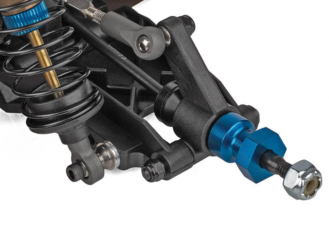 • New Factory Team 12mm hex front axle and rear CVA’s.