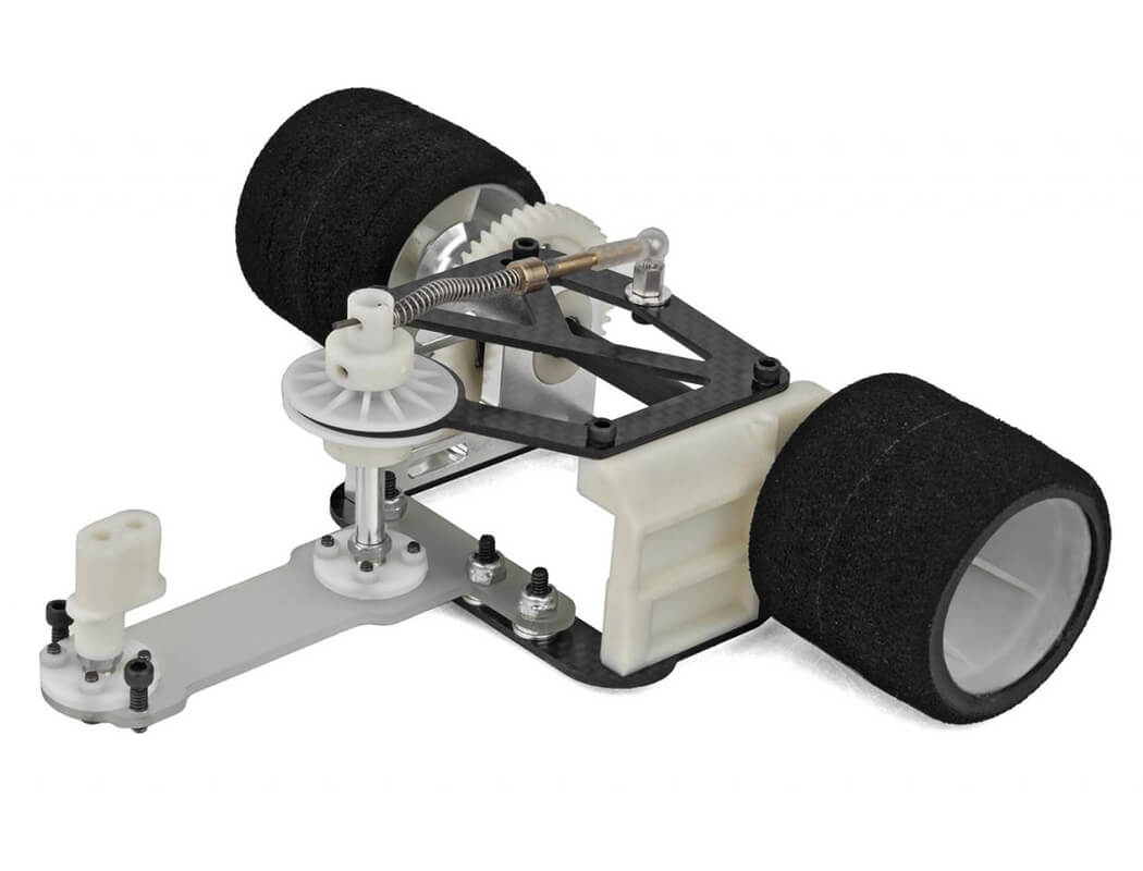 Superlight racing wheels contributed considerably to the RC12L’s reduced weight and improved response. A full range of tyre compounds, coil springs and gear ratios are also available for fine tuning.