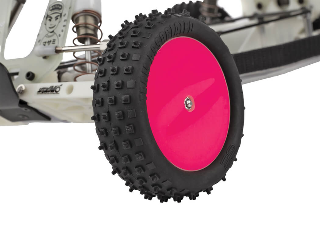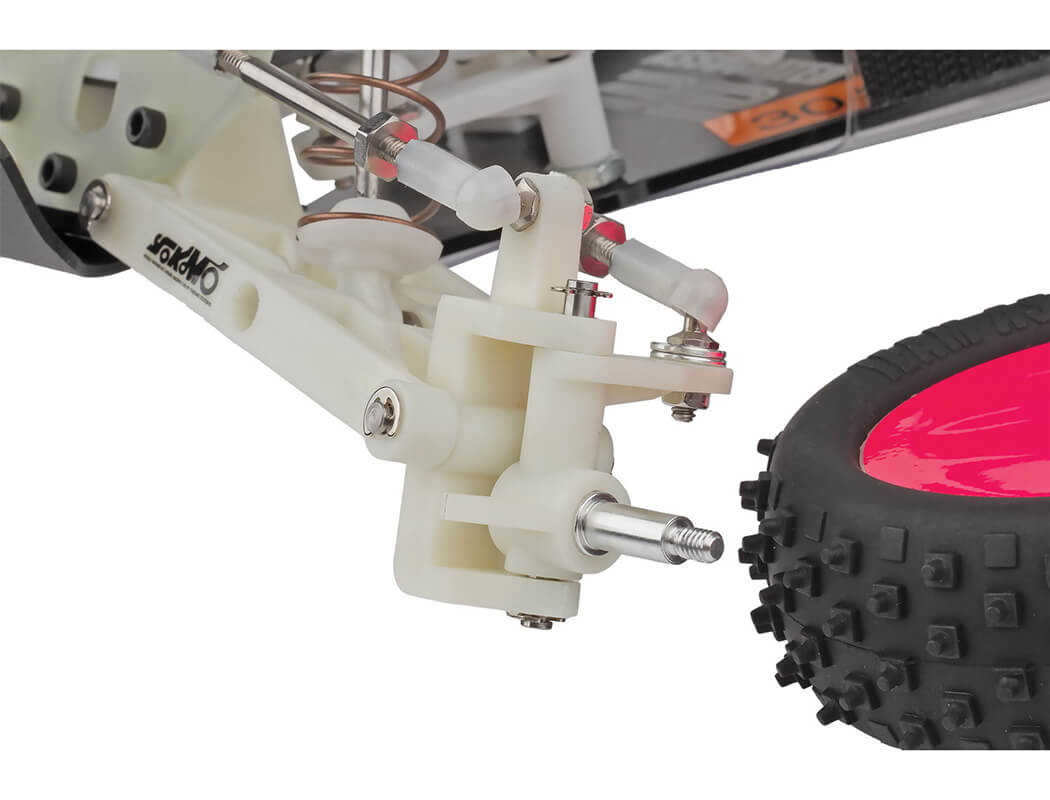 A-Arm/Ball joint design permits static camber, camber rise, caster, ride height and spring rate tuning to suit every type of track.