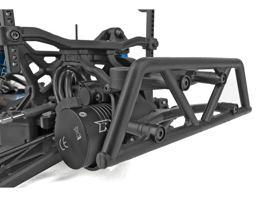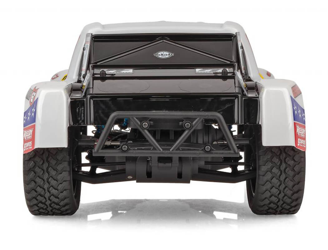 The Pro2 SC10SW short course truck is based on the 9-time ROAR Short Course National Championship-winning trucks, featuring a water-resistant high-power Reedy brushless speed control and 3300kV brushless motor, a 2.4GHz 2-channel radio system as well as our DVC (Dynamic Vehicle Control) receiver unit with built-in adjustable digital gyro. Add to that a Reedy Power metal-gear, digital high-torque servo and a water-resistant enclosed receiver box. All of this packaged together in an outstanding factory-finished blue and white body. And to keep you sticking to the terrain, this SC10SW short wheelbase beast will keep you cornering with the included high-grip all-terrain tyres and lightweight wheels. The time for tearing up the track is now.