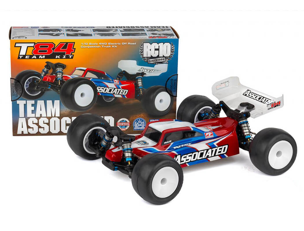 Enhanced aerodynamics come standard with an all new truck specific low-profile body paired with adjustable rear wing mount heights. The RC10T84 Team Kit is finished with shock tower covers, 3.5mm turnbuckles and ballcups, and 13mm big-bore shocks, providing the ultimate blend of strength, precision, and performance, the RC10T84 Team Kit is your key to placing on top of the podium!
