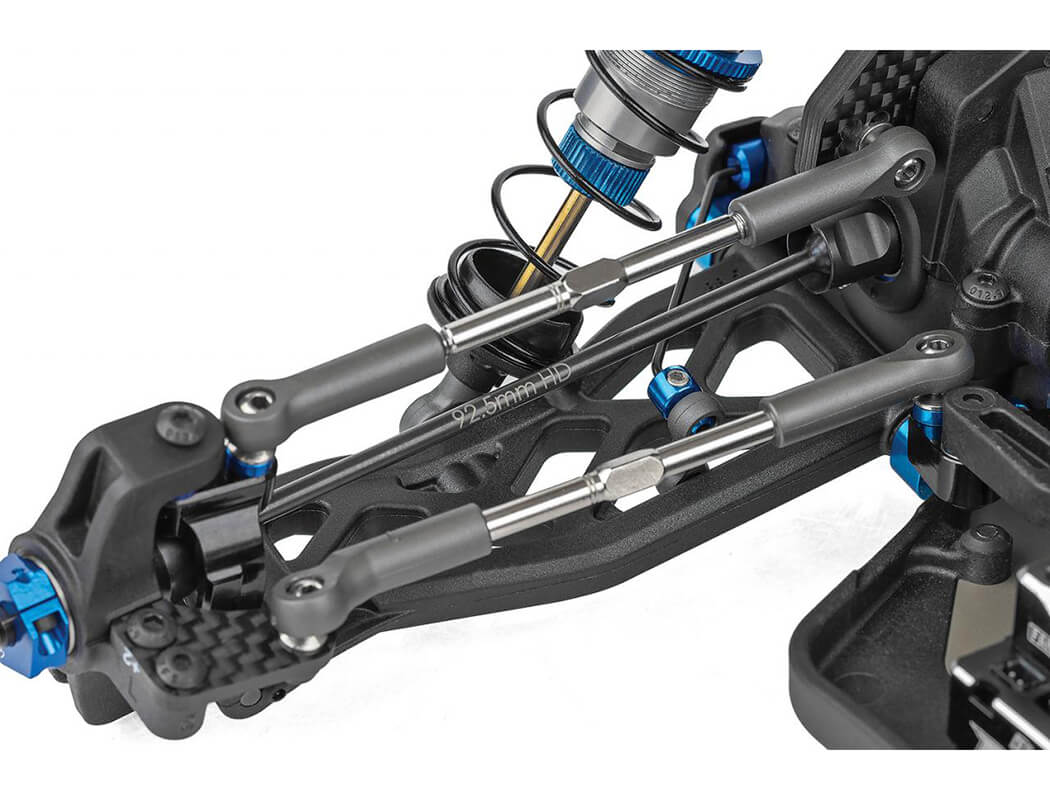 Its molded height-adjustable gearboxes ensure optimized drivetrain efficiency. The truck specific gull wing long-arm suspension geometry enhances grip and predictability, while the optimized steering bellcranks and rack provide exceptional bump steer control, keeping your lines tight at every corner.