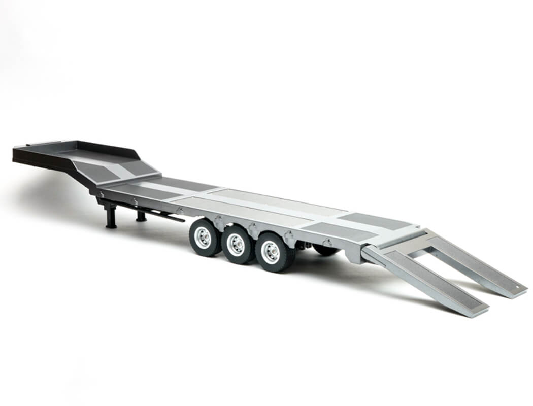 Ideal for transporting scale loads such as shipping containers, pallets or light construction equipment, this trailer adds genuine utility and visual impact to your haulage setup. It features a strong metal chassis, treaded rubber tyres, and a fifth-wheel coupling compatible with most 1:18 scale tractor units.