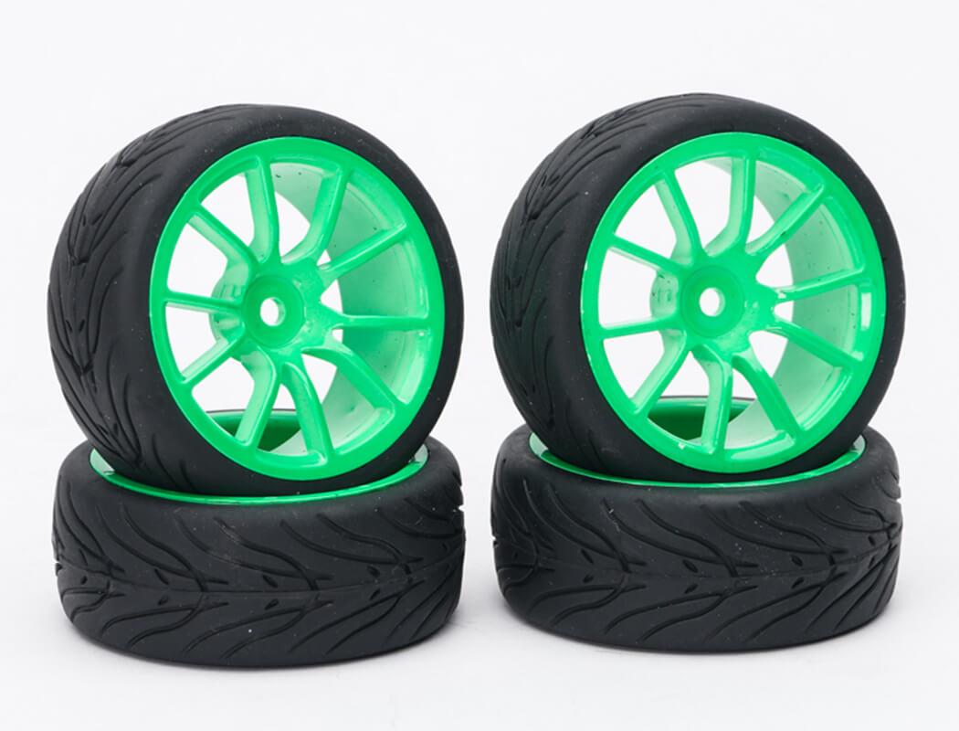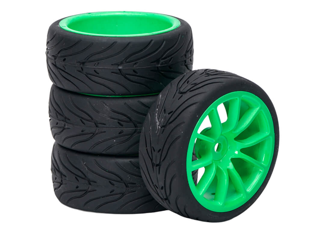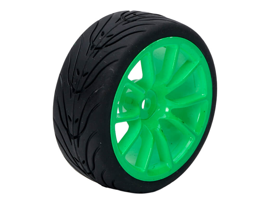 FASTRAX 1/10 STREET/TREAD TYRE 10SP NEON GREEN WHEEL