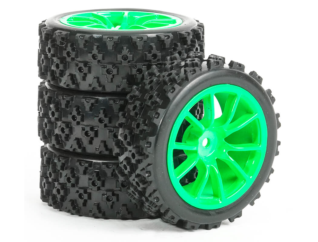 FASTRAX 1/10 STREET/RALLY TYRE 10SP GREEN WHEEL