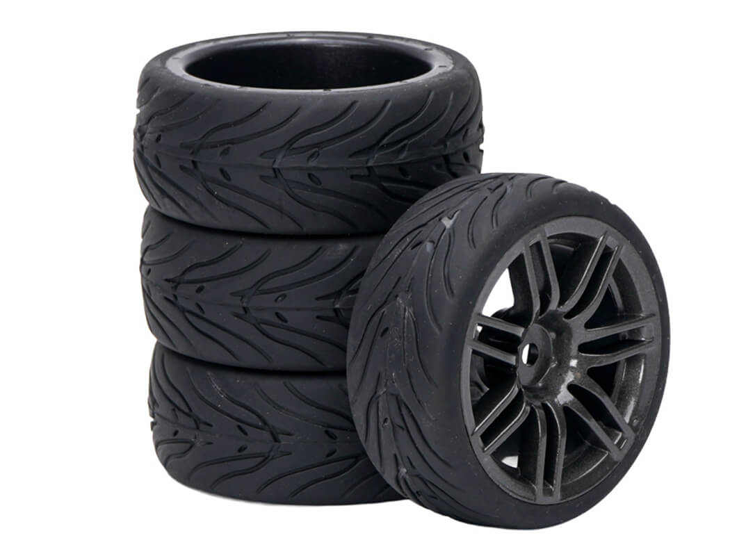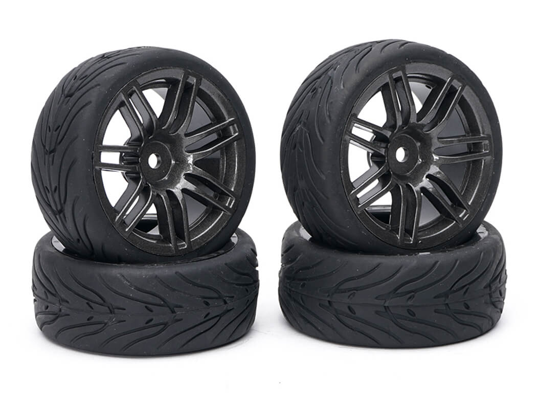 FASTRAX 1/10 STREET/TREAD TYRE 14SP GUN METAL WHEEL
