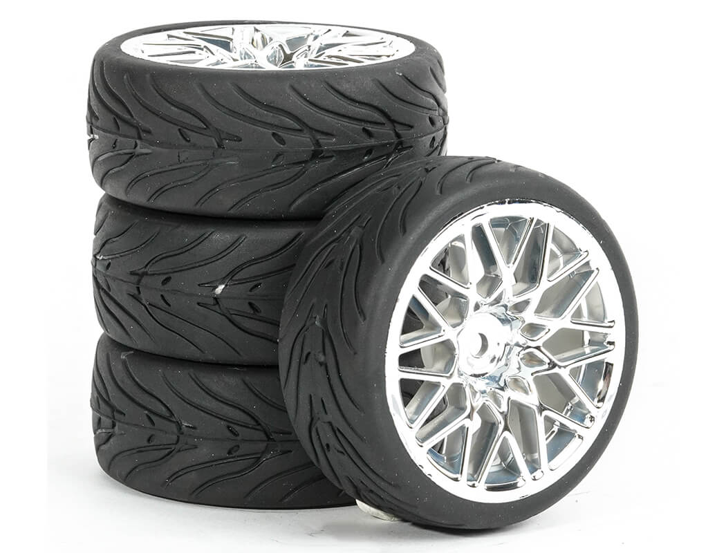 FASTRAX 1/10 STREET/TREAD TYRE STAR SPOKE CHROME WHEEL