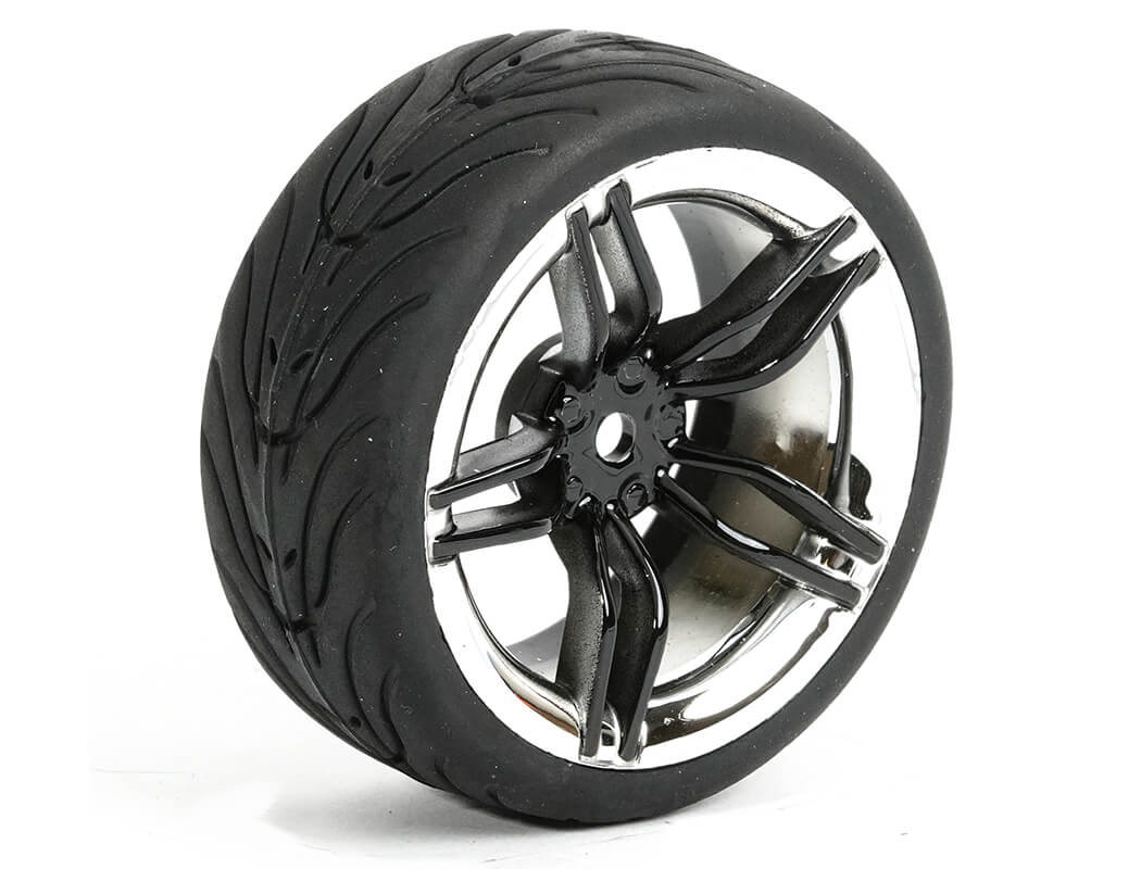 FASTRAX 1/10 STREET/TREAD TYRE 10SP BLACK/CHROME WHEEL