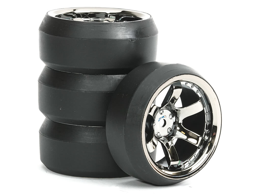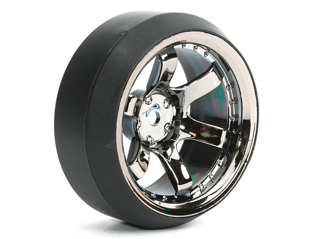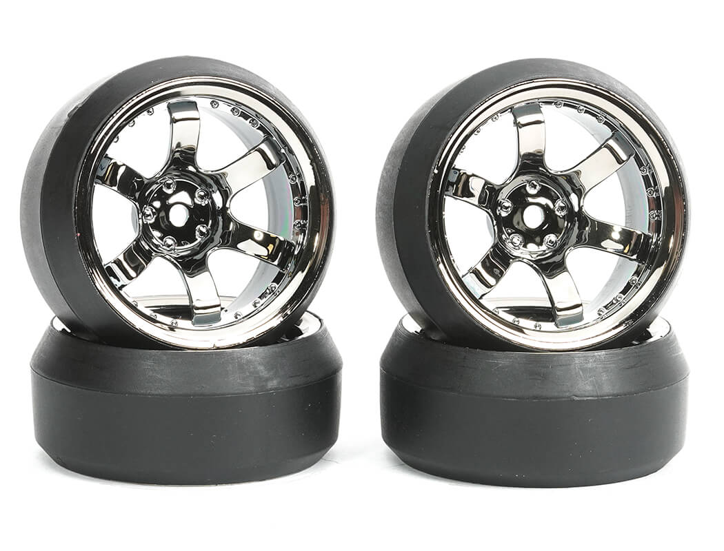 FASTRAX 1/10 (4) DRIFT D3 TYRE WITH 9MM 6-SPOKE WHEEL - BLACK CHROME