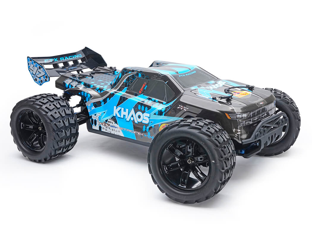 Blending affordability, specification and tunability, the Khaos is perfect for anyone stepping up from brushed models or wanting more performance beyond a regular 2S truck. With an oversized footprint, the Khaos is larger than a traditional 1:10 scale vehicle and features the latest Etronix 80A brushless speed control and 3665 2100Kv motor. Paired with a 3S 3300mAh LiPo battery, straight-line speeds are exciting while remaining controllable and easy to drive.