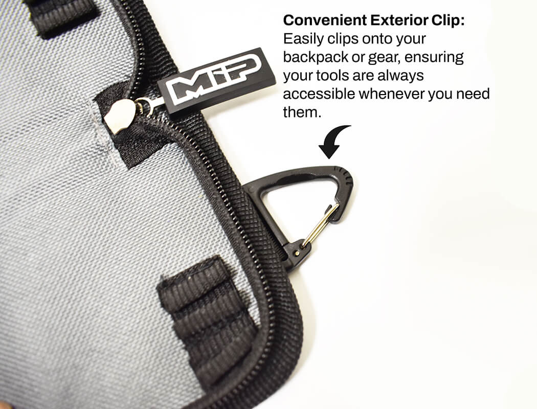 Introducing the MIP5211 - MIP 7-Inch, 13 Pocket Speed Tip™ Tool Bag, a compact and versatile Trail Kit designed for RC enthusiasts who need quick access to essential tools on the go. Perfect for outdoor adventures, this tool bag features a convenient exterior clip that allows you to easily attach it to your backpack or gear, ensuring your tools are always within reach.