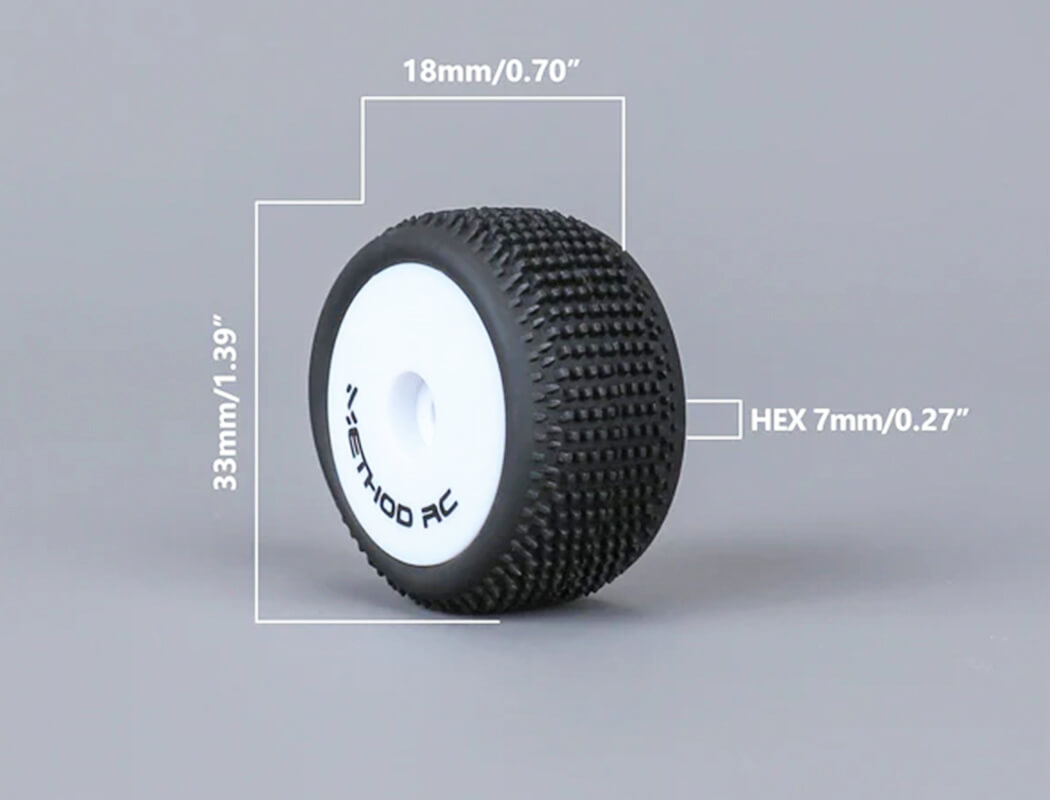 The all-new METHOD RC NitraGrip Micro-T Tire Set is engineered to raise the bar for small-scale indoor performance. Built with ultra-soft Nitrile Rubber — the core advantage of this NitraGrip series — these tires grip confidently on a variety of indoor surfaces (from polished tile floors to plush carpet tracks), delivering precise control and consistent performance that defines the series.