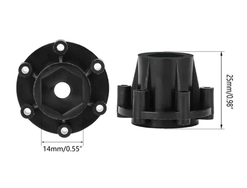Stock plastic hex adaptor for 1/10th Monster Truck tire