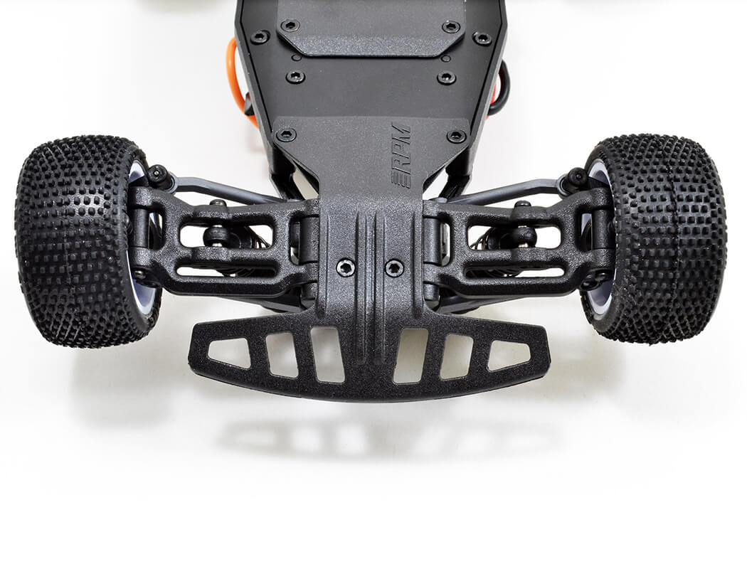 Up front, you get a massive 2-1/4" (57.1mm) wide shield that sticks out far enough to take the hit so your chassis doesn’t have to. Bonus: it slides underneath too, doubling as a skid plate to keep scrapes in check.