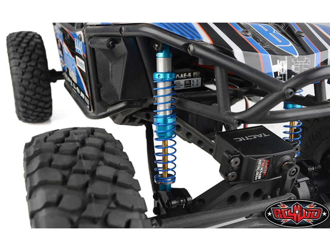 The latest update to the Licensed King Off-Road Racing Shocks feature our new X-ring technology that reduces contact friction for smooth shock shaft movement while improving oil retention around the shock shaft. Built and ready to handle the rocks. Your scale build will never be the same once you bolt up a set of these awesome looking shocks!